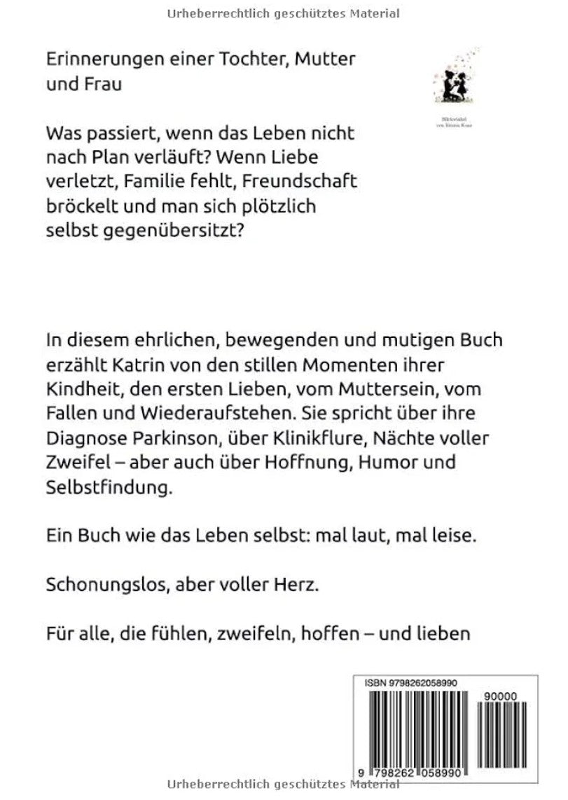 In diesem ehrlichen, bewegenden und mutigen Buch erzählt Katrin von den stillen Momenten ihrer Kindheit, den ersten Lieben, vom Muttersein, vom Fallen und Wiederaufstehen. Sie spricht über ihre Diagnose Parkinson, über Klinikflure, Nächte voller Zweifel – aber auch über Hoffnung, Humor und Selbstfindung.