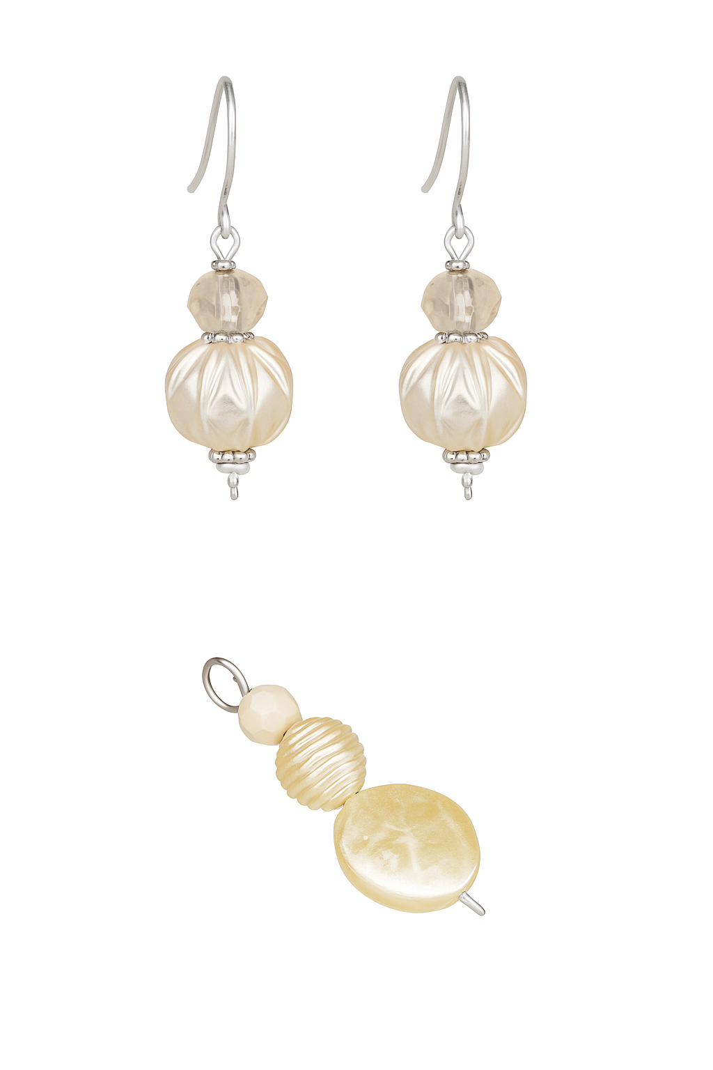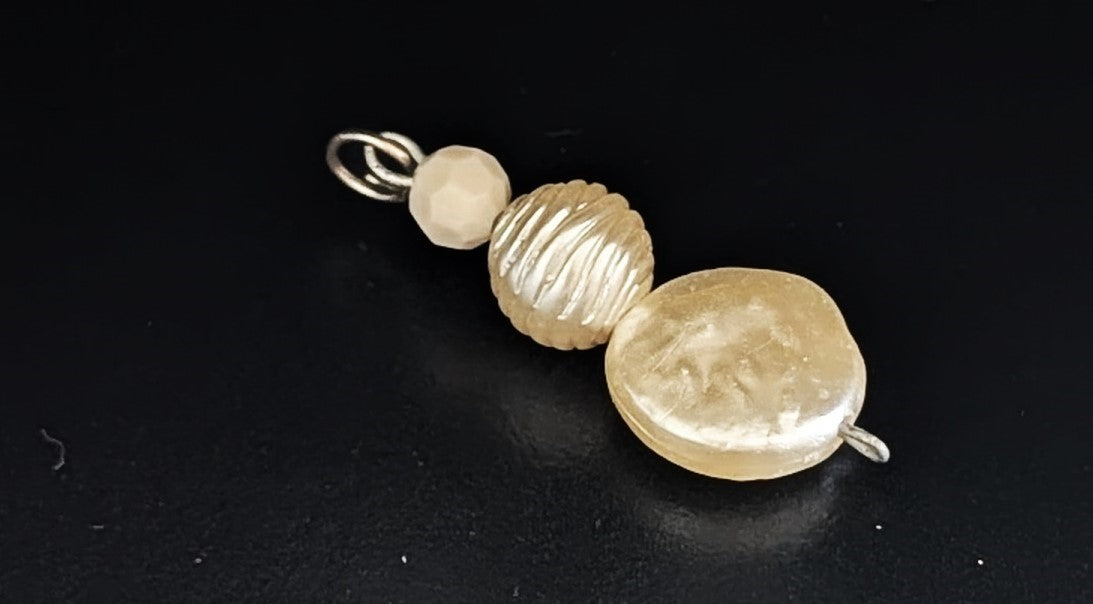 Ein Hauch von Eleganz in zarter Champagnerfarbe – dieser handgefertigte Anhänger verleiht jeder Kette einen stilvollen Akzent. Drei harmonisch abgestimmte Perlen in verschiedenen Formen und Strukturen sorgen für ein edles, aber modernes Design.